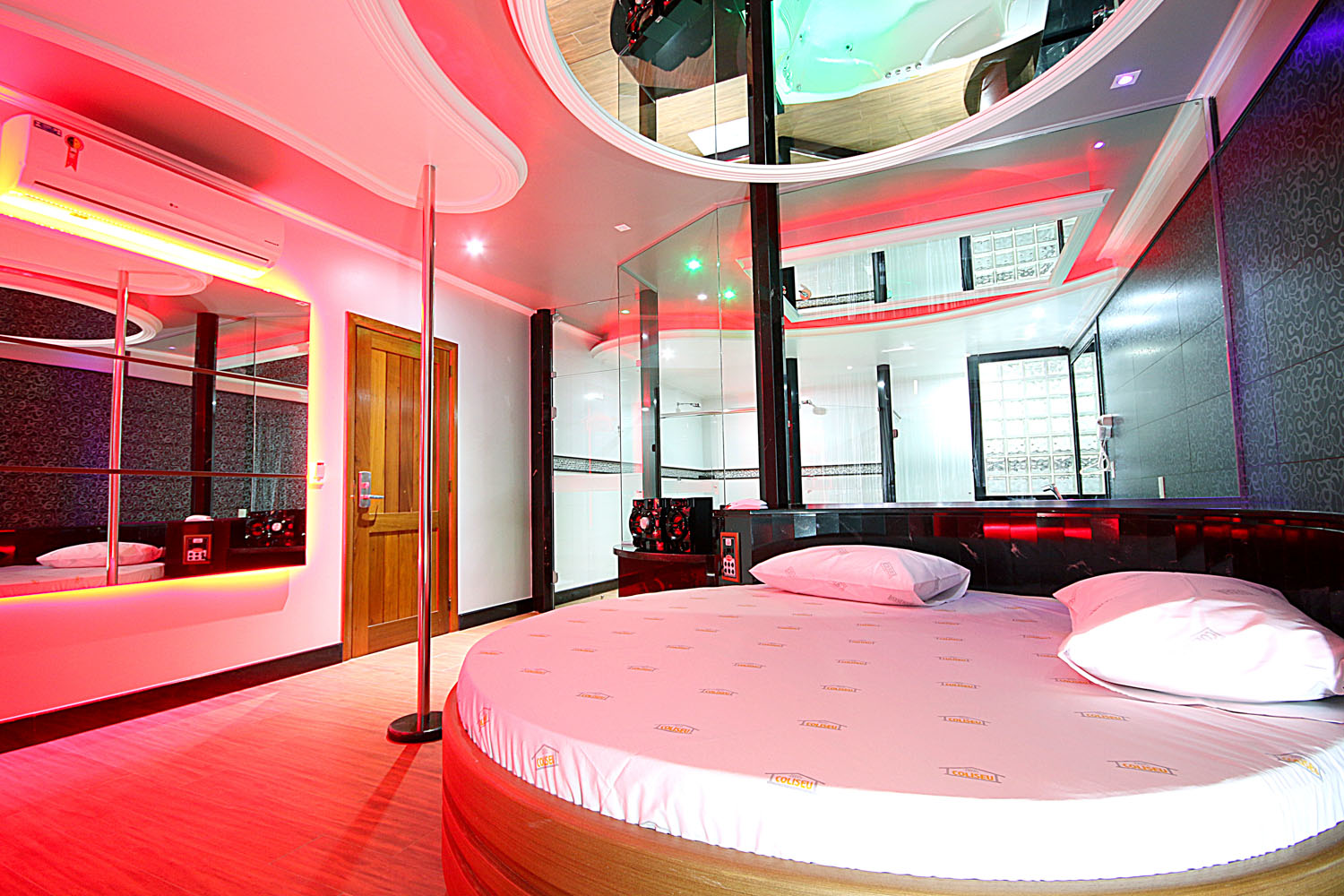 A suíte certa para quem busca o requinte dos impérios! Comporta de duas a três pessoas. Ideal para casais que querem um ambiente aconchegante e luxuoso. Conta com banheira de hidromassagem e pole dance.